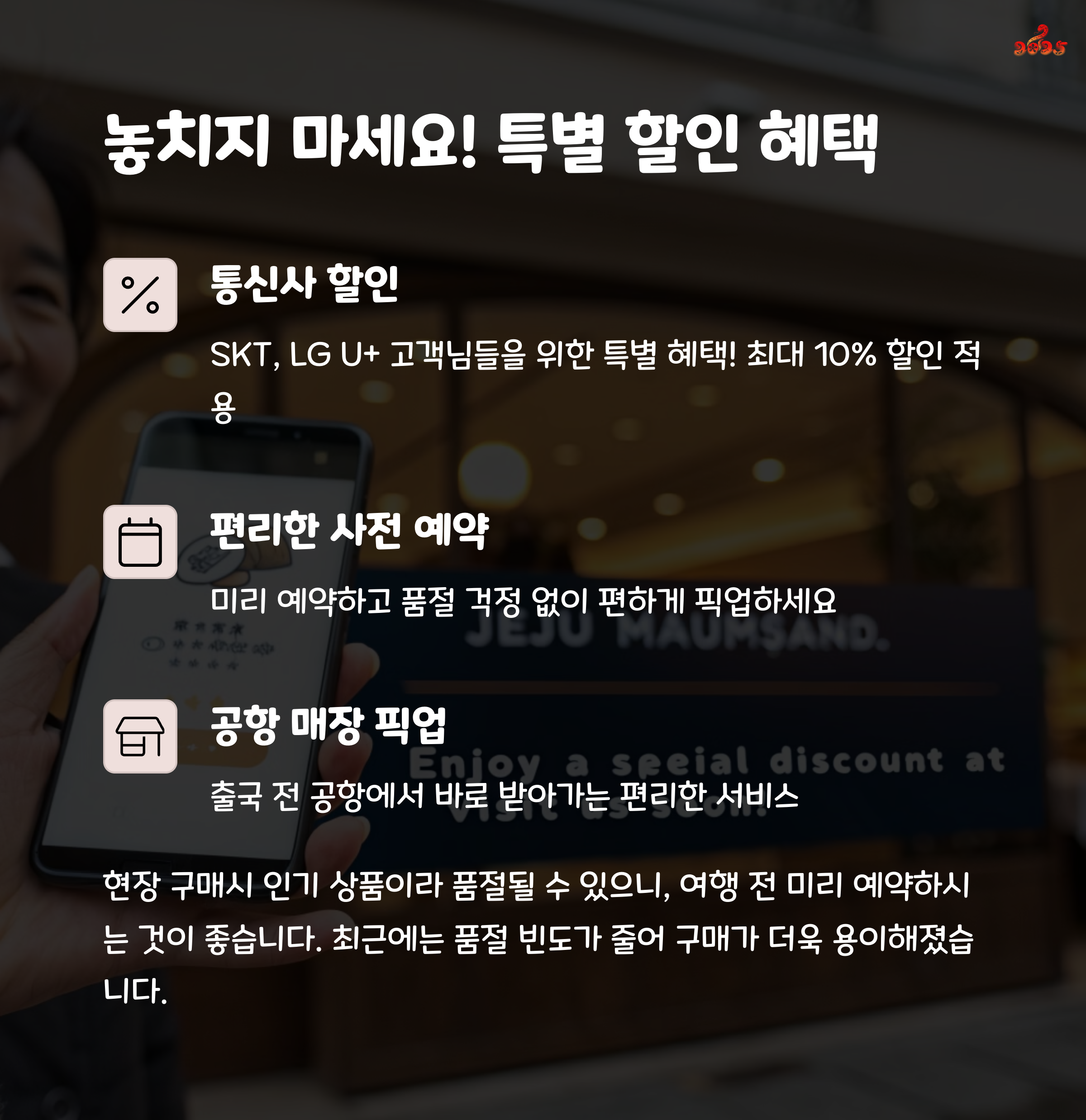 - 할인 혜택: 특정 통신사 고객에게 최대 10% 할인 이벤트 진행 중