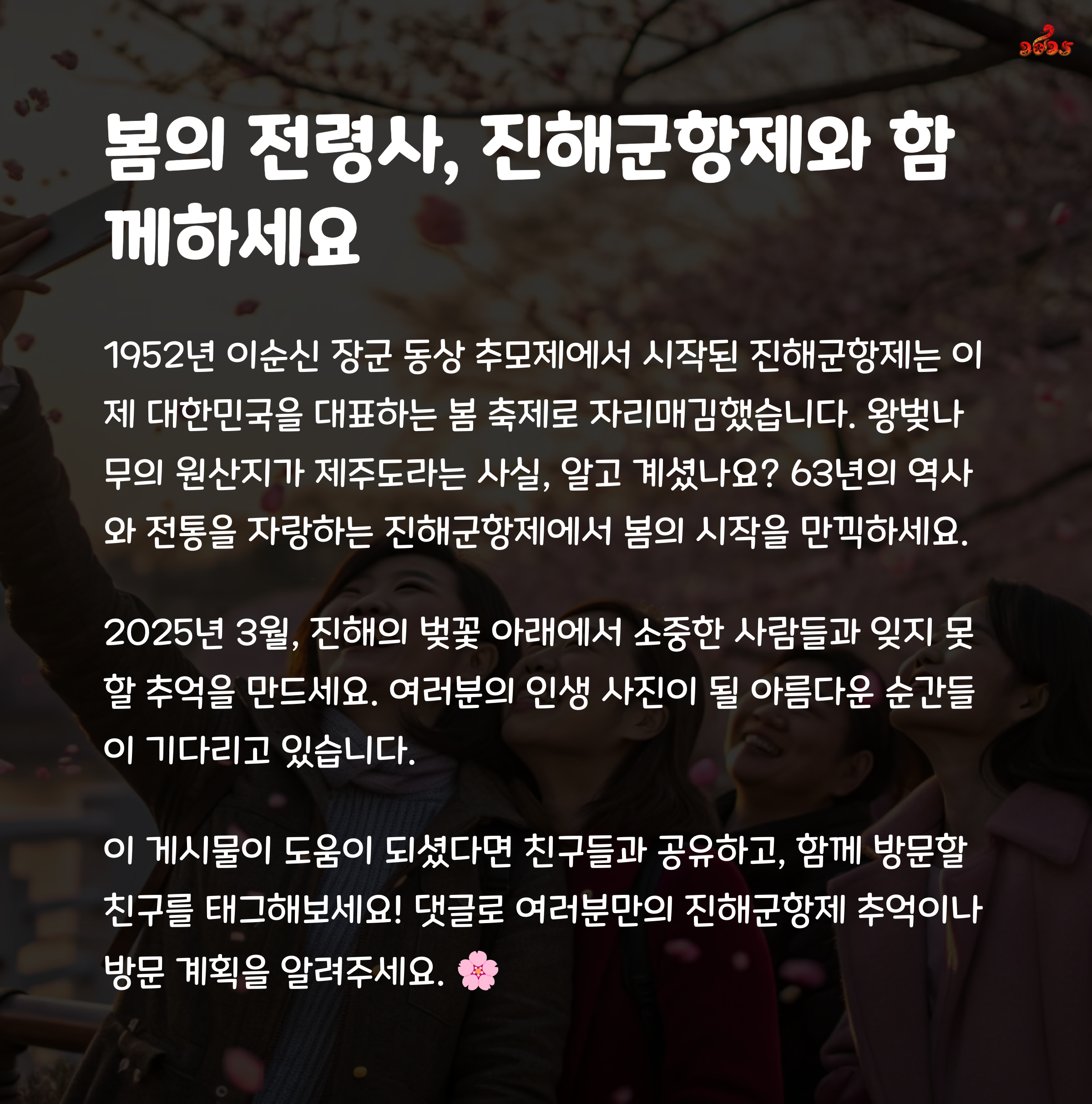 이번 군항제가 여러분의 봄날을 더욱 특별하게 만들어줄 거예요!