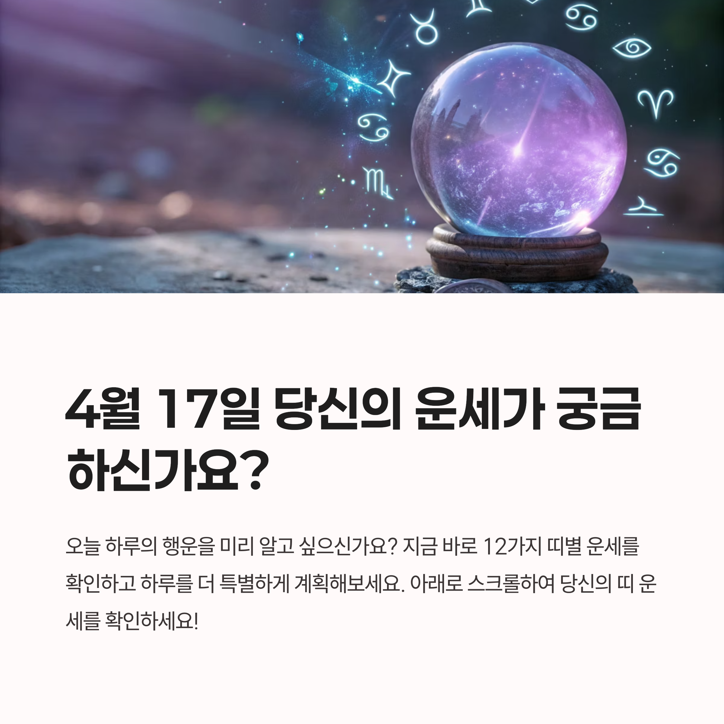 | 2025년 4월 16일 오늘의 운세 여러분의 행운을 응원합니다. (0) | 2025.04.16 |